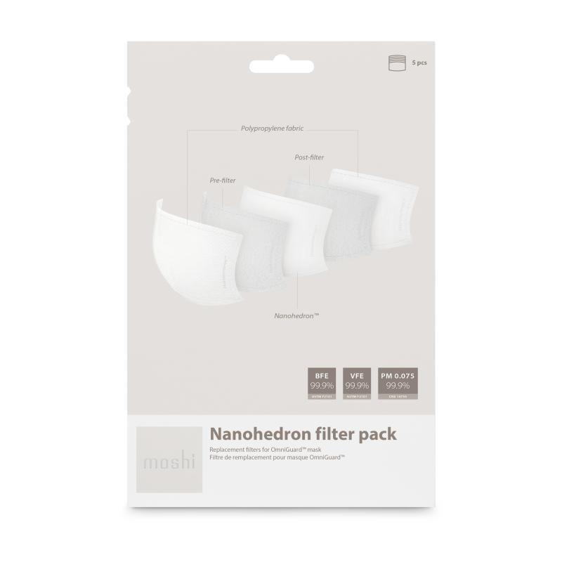Moshi Nanohedron™ 奈米薄膜口罩濾片專為 Moshi OmniGuard™ 可水洗重複使用口罩設計,