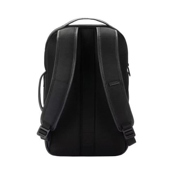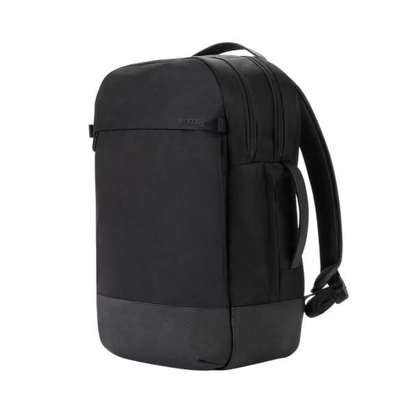 Incase Twill & Leather 16吋雙層後背包採用450D環保再生聚酯材質搭配優質荔枝紋真皮皮革製成, 擁有良好的支撐性及耐用性, 及時尚的全黑外觀設計。