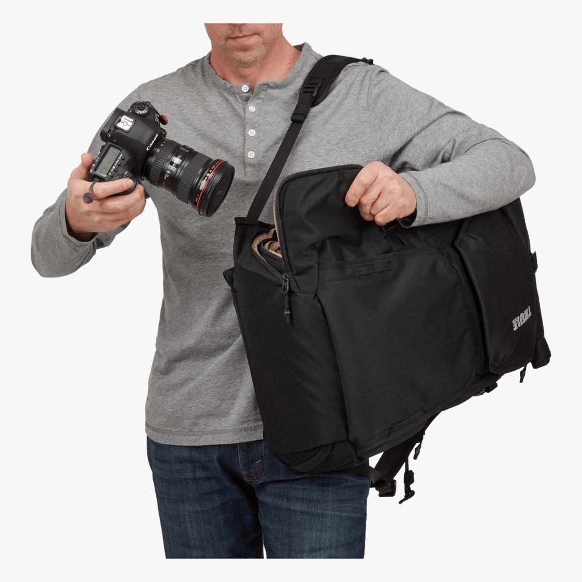 側面方便存取相機和攝影裝備(將相機收納系統蓋塞入側開口,可即時取用)